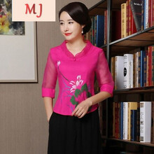 【时尚新款】蒙橘中国风女式唐装旗袍上衣女短款2019夏季改良时尚宽松棉麻妈妈上衣 玫红色 XXL