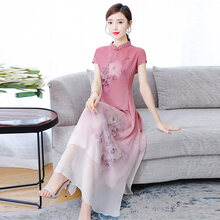 恒潮 旗袍2021年改良连衣裙妈妈春装中国风女夏唐装新中式今年流行 渐变粉 M
