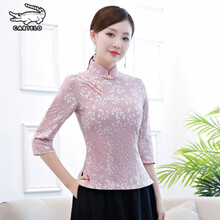 卡帝乐鳄鱼民国风女装短款旗袍上衣复古中袖茶服唐装女中国风套装两件套装裙 728089粉色-上衣 M