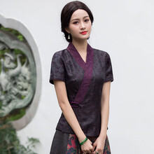 华族经典真丝桑蚕丝高档中式唐装女时尚复古改良旗袍上衣汉服春 紫色 S