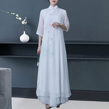 恒潮汉服中国风女装旗袍女夏改良版连衣裙唐装茶服禅服茶艺服装两件套 连衣裙 M