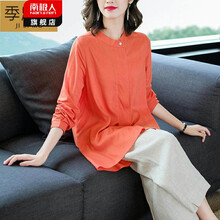 南极人 轻奢高档品牌唐装女民国风中式汉服中国风中年妈妈衬衫上衣女苎麻时尚棉麻套装气质女装 桔色 M