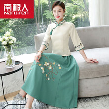 南极人轻奢民国风女装夏复古中国风盘扣上衣旗袍两件套改良汉服茶服唐装套装 图片色 M