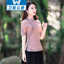 ℘品牌直营℘唐装中国风女装棉麻女装复古旗袍式上衣年轻款时尚中式女装 9134粉色 S