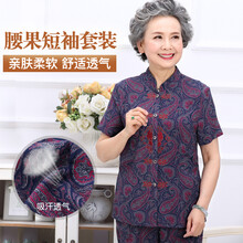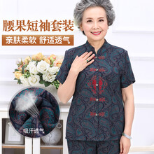 中老年人女装夏装套装纯棉绸70岁80奶奶装短袖老太太夏天妈妈唐装两件套婆婆装夏天上衣裤子舒适衣服 绿色 3XL(建议体重111-120斤)