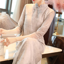 民族中国风女装茶艺服装禅服茶服雪纺裙子改良唐装旗袍连衣裙女夏轻奢品牌女装 灰色 S