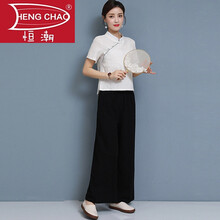 恒潮奢华高档汉服女夏装禅修服居士服中国风复古禅意女装棉麻茶服中式唐装套装 白色套装 M