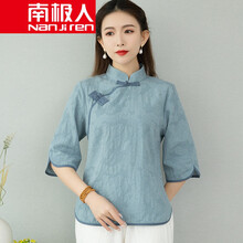 南极人品牌高档女装 民国风复古女装夏季改良汉服唐装上衣大腿裤套装禅意居士工作服轻奢新品 仅蓝色上衣 XXL