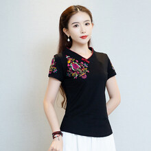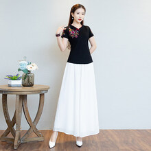 云南民族风古装汉服女中国风夏季短袖旗袍上衣裤子套装唐装舞蹈服 黑衣+白 M
