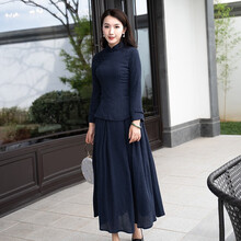 如意风改良唐装裙子两件套裙民族风上衣套装盘扣复古中式女装秋装 R116 L