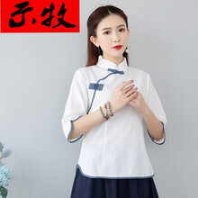 示牧品牌女装茶服女2021夏季仙气汉服两件套装薄款民国风禅意女装旗袍改良复古唐装 白色上衣 S