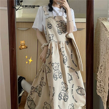 与萱背带裙子女夏天学生衣服2021新款初中生高中生少女夏装日系原宿风宽松显瘦中长款连衣裙套装 图片色套装 XL