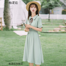 格逻菈连衣裙学生夏天高中生初中生女生裙子夏季韩版衣服可爱长款仙女裙少女中学生女孩学院风宽松显瘦中长裙 绿色 均码