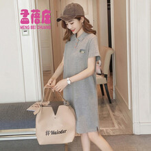 孟蓓庄连衣裙女时尚中长款t恤裙2021新款polo领宽松显瘦短袖学生妹妹裙子韩版学院风沙滩裙夏季 灰色 XL(110-125斤)