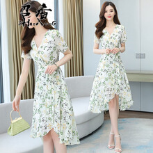 召香 碎花连衣裙女夏新款韩版小个子洋气减龄温柔气质女神范裙子 白色 XL