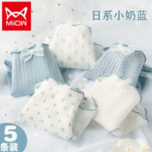 猫人【5条装】女生内裤女日系小清新海军风蓝色小花少女中腰内衣女三角学生可爱女士裤衩初中生裆部纯棉 M 90斤以下