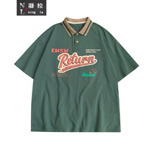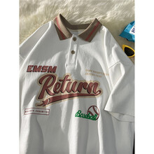 @凝拉 polo领短袖t恤女美式街头半袖2021年新款日系复古宽松上衣设计感小众情侣装 白色 2XL