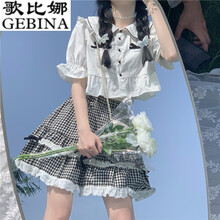 歌比娜 格子短裙套装少女夏装2021新款初中高中学生日系甜美可爱连衣裙子 白衣格子裙 S