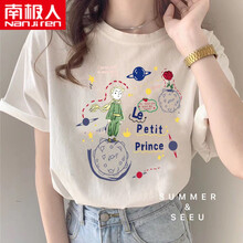 南极人日系卡通印花短袖T恤女夏季2021年新款宽松韩版ins原宿风半袖上衣 白色-【小王子】 S 建议75-96斤