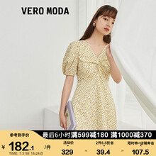 Vero Moda2021春夏新款复古法式碎花泡泡袖V领连衣裙|32127B055 D07柠咖黄色 155/76A/XS