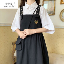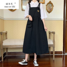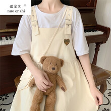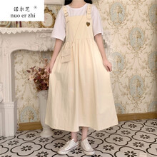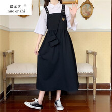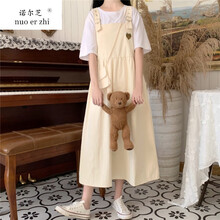 诺尔芝 背带裙子少女夏装2021新款初中高中学生长裙学院风日系休闲连衣裙 白T恤+杏裙两配包包 L