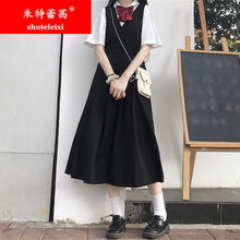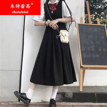 朱特蕾茜 少女装JK制服学院风连衣裙女生夏季2020新款初中高中学生韩版宽松日系背带裙子 白衬衣+背带裙两件套(配领结) S