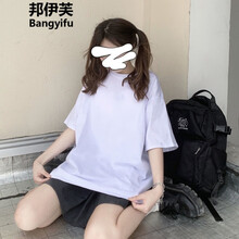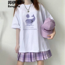 邦伊芙2021春夏季短袖t恤女 ins夏季新款黑白日系韩版原宿短袖T恤女学生宽松上衣软妹 白色(鲸鱼) L 106-115斤以内