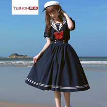 雁皇 jk制服长裙奶方裙护奶裙海军领jk制服裙学院风连衣裙星空水手裙夏季日系长裙 U31-1518藏青色海军风连衣裙 S建议70-90斤