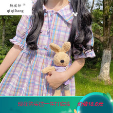 绮琪行格子连衣裙少生夏2020年新款初中学生日系甜美娃娃领紫色裙子 紫色 S