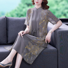 【全场特】【抢一件】夏装雪纺旗袍连衣中年女洋气短袖高贵子 灰色 4XL(建议140-150斤)