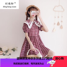 玎琅轩 夏天格子连衣裙少女生夏装2020年新款初中学生日系软妹娃娃领可爱裙子女 红色格子 M