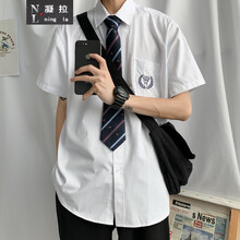 @凝拉 JK衬衫女设计感刺绣上衣褂子日系chic白色短袖衬衣女韩版新款学院风情侣小众外穿衬衫 白色 XL