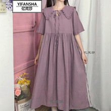 亿梵莎夏天初中生高中生女装大学生女生裙子日系温柔娃娃领紫色连衣裙学生夏季法式复古仙甜美学院风 图片色 均码