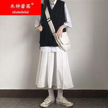 朱特蕾茜 少女装JK制服工装连衣裙少女生夏装2020新款初中高中学生学院风套装日系长裙子 白衬衫+白裙+黑马甲三件套 L