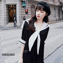 丹贝迪特 连衣裙女夏2021年日系学院风海军领短袖裙子女小个子学生装初恋裙女清新文艺打底裙女潮 黑色 XL