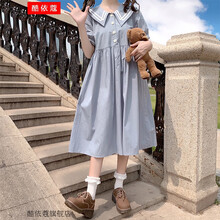 酷依蔻连衣裙学生夏天高中生初中生女生裙子夏季韩版衣服潮流长款仙女裙少女中学生热天学院风宽松显瘦中长裙 浅蓝色 均码