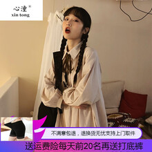 心潼 新品少女初中学生大学生女装早秋新款长裙脚踝学生衬衫裙女日系少女风格穿搭甜美中长款连衣裙 8060杏色 M