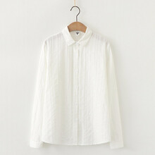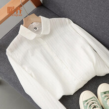 全棉衬衫女长袖日系小清新提花螺纹纯色白色休闲衬衣简约百搭纯棉早春女装暖乔 白色圆领 M(100--110斤)