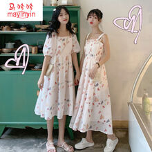 元气少女闺蜜装2020夏季ins风日系裙子中学生可盐可甜碎花连衣裙 红色短连衣裙 均码