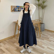 英尼芝 秋季长裙脚踝学生仙气日系少女风格穿搭背带裙长款过膝森系裙子 2806衬衣+2806裙子 均码