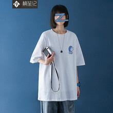 楠笙记 日系t恤女短袖宽松waitmore时尚显瘦个性五分袖上衣2021夏季百搭ins半袖体恤T恤女 白色 2XL