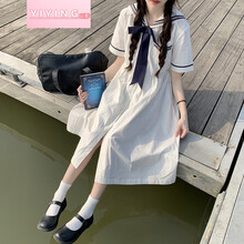 以影女生女大童海军风连衣裙女夏装2021新款中生韩版学院风日系短袖夏天裙子女学生 白色 均码
