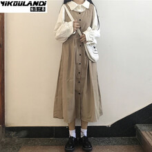 JK制服春秋女装秋装长裙子脚踝学生可爱日系少女穿搭仙气连衣裙女森系复古冷淡风 2294白色衬衫+2294卡其色连衣裙 均码