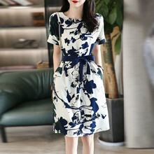 【全场特】【抢一件】日系轻奢连衣女夏季气质收腰圆领水墨印染显瘦中长 花色 L(建议95-110斤)