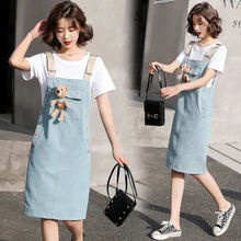婵姻两小熊背带裙女夏季2021洋气减龄可爱日系小个子学生时尚百搭 蓝色 单背带裙 M(90-105)