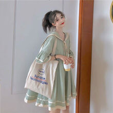 辛晨曦蔻梅小清新海军学院风连衣裙2020jk可爱裙子学生韩版女夏A字宽松 1311#系带连衣裙 绿色 S 60-85斤