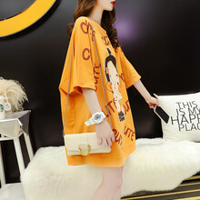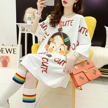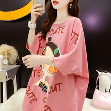 姿派女孩甜美日系短袖t恤女韩版宽松中长款夏季2021年新款欧货大版半袖上衣设计感小众 米白色 【均码/建议85-155斤】
