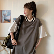 风采兔 翻领polo衫港味ins短袖t恤女学生宽松韩系温柔风泫雅减龄洋气上衣 蓝色 M
