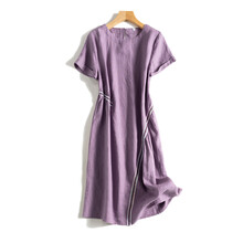 雁皇高端日本日系出口女装宽松法国短袖连衣裙女夏 葡萄紫 XL