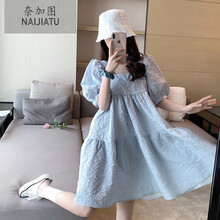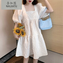 大码2021夏季新款小清新可爱方领娃娃裙泡泡袖初恋裙连衣裙显瘦女 白色 XL 125-135拍XL